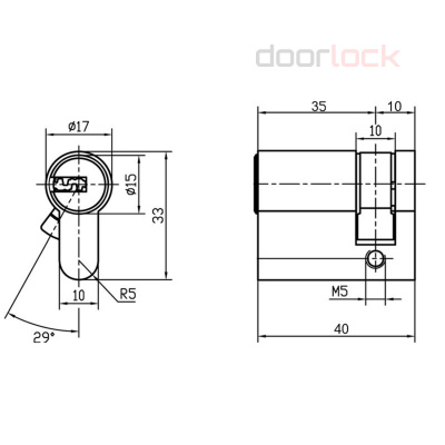 Цилиндровый механизм, фиксирующий винт, 5 ключей
